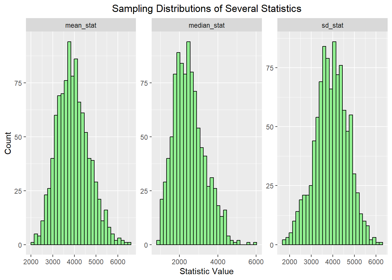 Some of these have cleaner mathematical results than others, but they all reinforce the same idea: statistics vary from sample to sample, and repeated sampling helps us understand that variability.